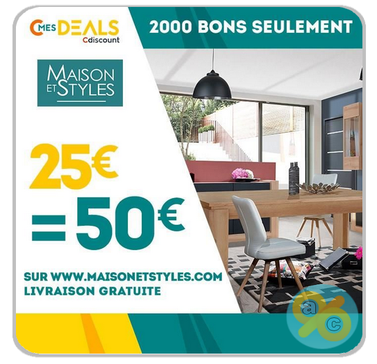 Sujet: CmesDeals : 25€ = 50€ sur l'ensemble du site Maison et Styles (Lu 585 fois)