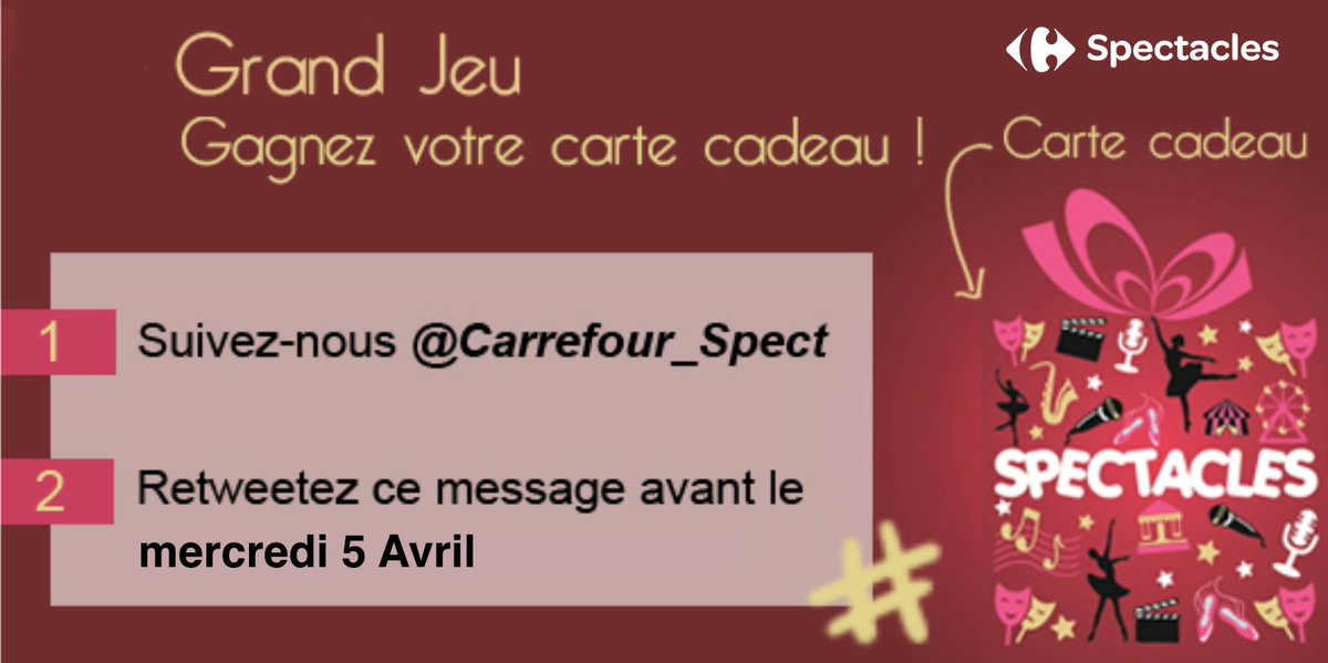 Sujet: TAS TW Carrefour Spectacles : Cartes cadeaux à gagner ! 05/04/2017 (Lu 487 fois)