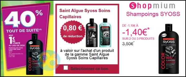 Existe en plusieurs variétés, à vérifier si les produits des autres offres Shopmium Syoss font partie de la promo