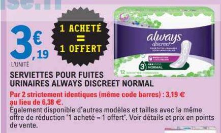 Sujet: Serviettes Discreet Always chez Leclerc Centre-Est (16/06 - 27/06) (Lu 251 fois)