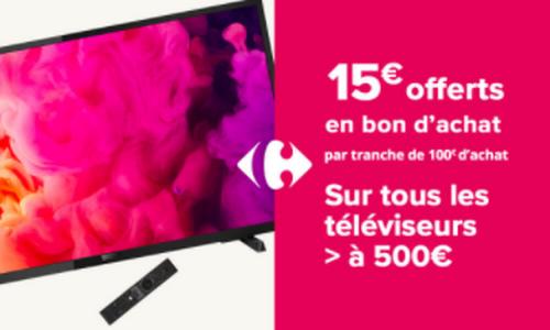 Carrefour : 15€ en Bon(s) d'Achat par tranches de 100€ sur Téléviseurs*