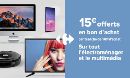 Carrefour : 15€ en Bon(s) d'Achat par tranches de 100€ sur Electro + Multimédia