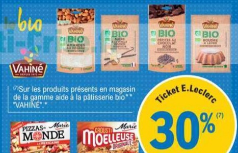 Aide à la Pâtisserie Bio Vahiné chez Leclerc (13/10 - 24/10)