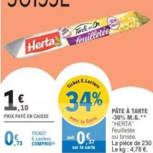 Pâte à Tarte Herta chez Leclerc Nord-Est (17/11 - 21/11)