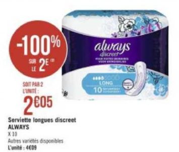 Serviettes Discreet Always chez Casino (23/11 - 06/12)