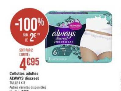 Culottes Discreet Always chez Casino (23/11 - 06/12)