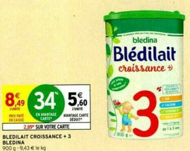Blédilait Croissance+ Blédina chez Intermarché (13/07 - 25/07)