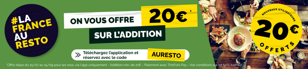 Du 15 juillet au 15 septembre, TheFork offre une réduction de 20 € à tous les nouveaux utilisateurs qui réservent pour la première fois sur TheFork et dépensent au moins 21 €