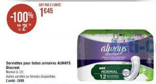Sujet: Serviettes Discreet Always chez Géant Casino (16/08 - 29/08) (Lu 164 fois)