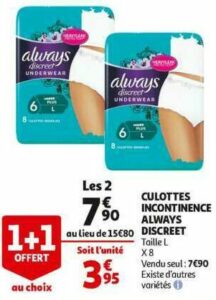 Culottes Discreet Always chez Auchan (14/09 - 20/09)