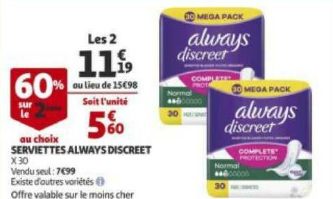 Serviettes Discreet Always chez Auchan (14/12 - 24/12)