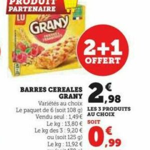 Sujet: Barres de céréales GRANY chez Magasins U (10/01 - 22/01) (Lu 249 fois)