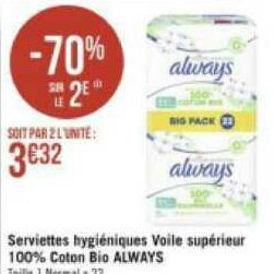 Serviettes always Cotton Protection chez Géant Casino (27/02 - 12/03)