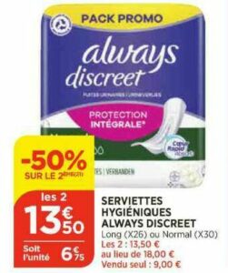 Serviettes Discreet always chez Bi1 (08/03 - 13/03)