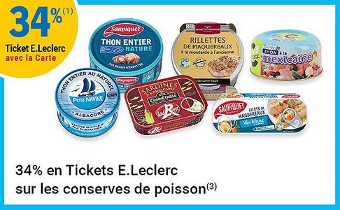Auteur Sujet: Leclerc : 34% en tickets Leclerc sur les conserves de poisson (Le 15/03)  (Lu 1029 fois)