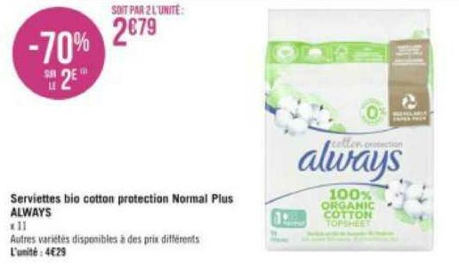 Serviettes Cotton always chez Géant Casino (27/03 - 10/04)