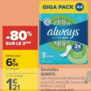 Serviettes Platinum Always chez Carrefour (16/05 - 22/05)