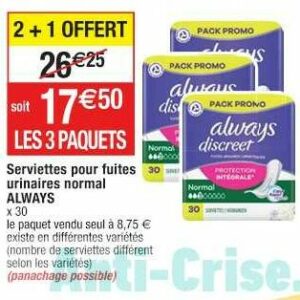 Serviettes Discreet always chez Cora (13/06 - 19/06)