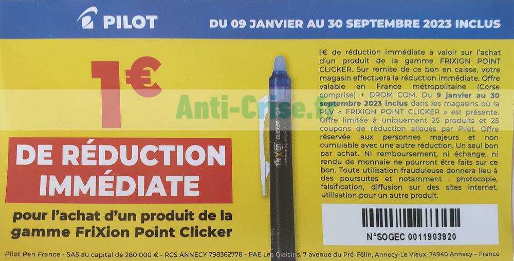 Sujet: Bdr 1€ PILOT FriXion Point Clicker (Lu 312 fois)