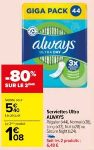 Sujet: Serviettes Ultra Always chez Carrefour Market (25/07 - 06/08) (Lu 212 fois)