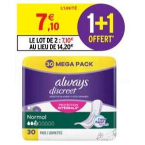 Serviettes always Discreet chez Intermarché (19/09 - 24/09)