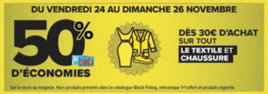 Carrefour : 50% sur carte sur le Textile et les Chaussures (24/11 - 26/11)