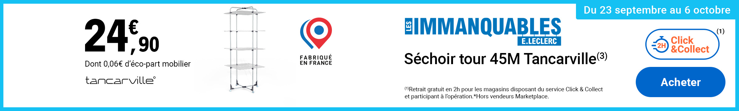 Leclerc : séchoir tour 45m Tancarville fabriqué en France 24.90€ (23/09 - 06/10)