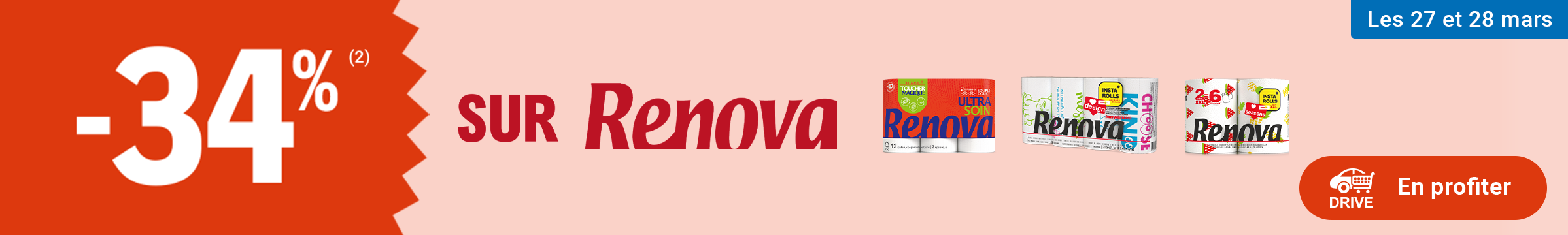 (2) En magasin, avantage immédiat réservé aux porteurs de la Carte de fidélité. Offre non cumulable avec des produits de la même gamme bénéficiant d’une autre promotion. Offre limitée à 5 produits par foyer pour cette opération et réservée à une consommation personnelle. Le magasin se réserve le droit de refuser toute demande d’une quantité supérieure aux besoins habituels généralement constatés pour une consommation personnelle. Offre interdite à la revente.