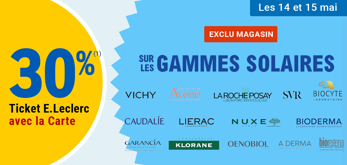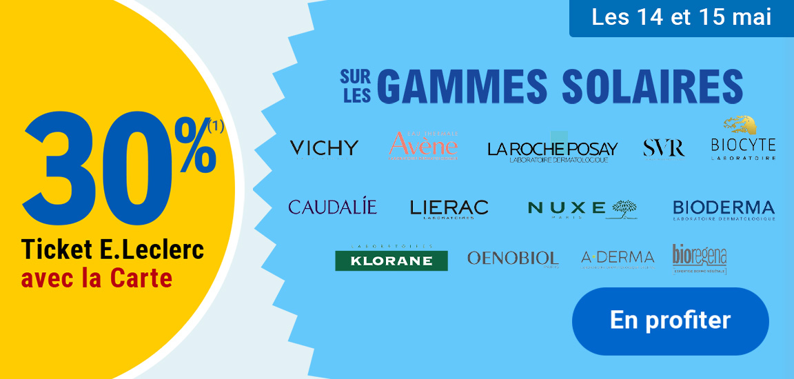 Auteur Sujet: Leclerc : 30% en tickets leclerc sélection marques gammes solaires (14/5-15/5)  (Lu 521 fois)