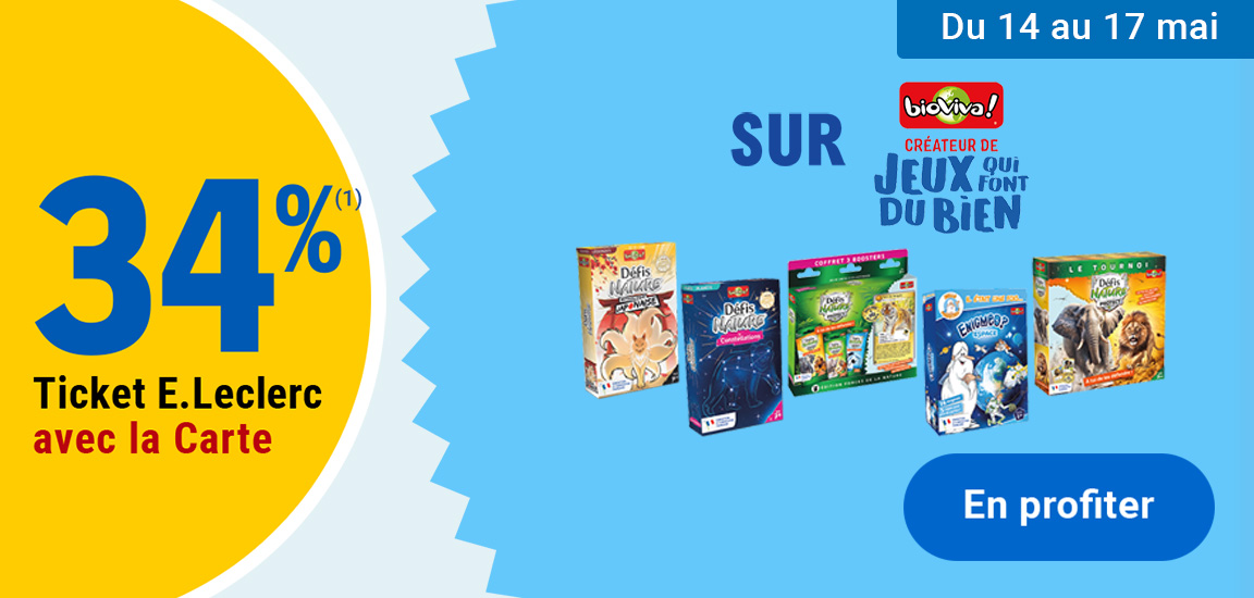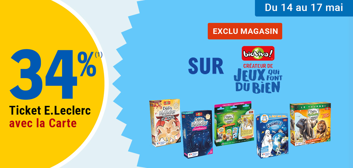 Auteur Sujet: Leclerc : 34% en tickets leclerc sur les jeux Bioviva (14/05 - 17/05)  (Lu 567 fois)