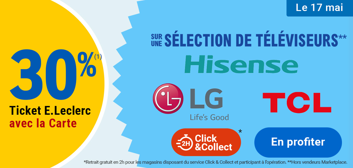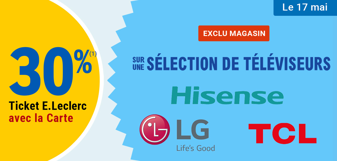 Auteur Sujet: Leclerc : 30% en tickets leclerc sur sélection TV Hisense/LG/TCL (Le 17/05)  (Lu 1314 fois)