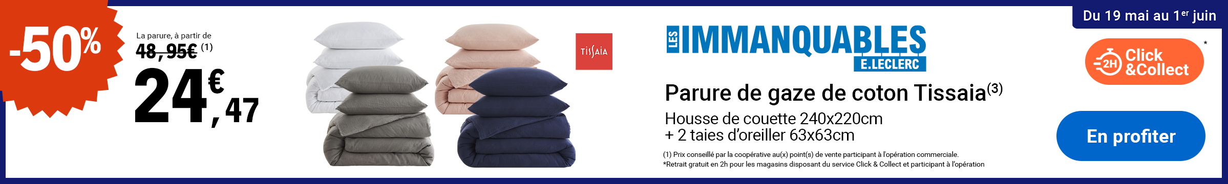 Leclerc : parure de gaze de coton Tissaia 24.47€ (19/05 - 01/06)
