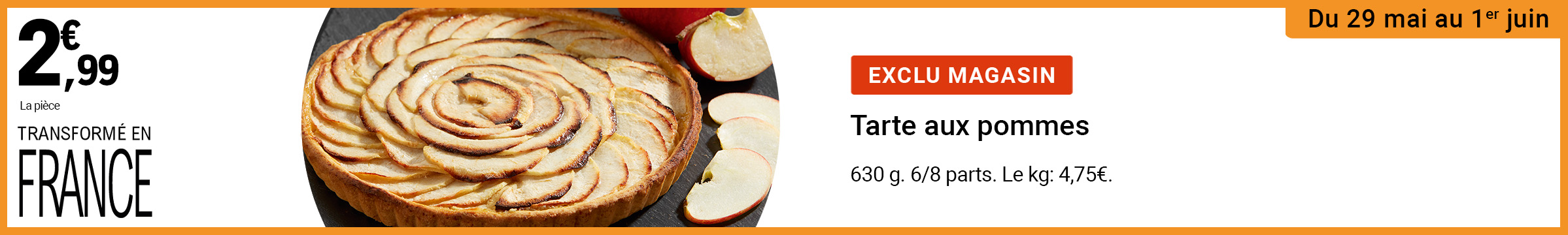 Leclerc : tarte aux pommes tranformée en France 2.99€ la pièce (29/05 - 01/06)