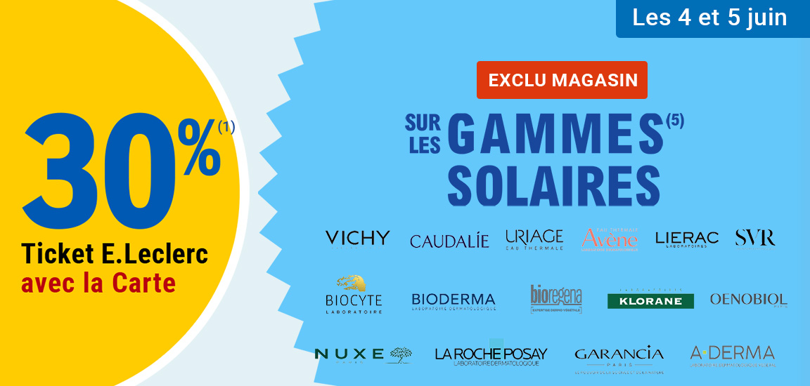 Auteur Sujet: Leclerc : 30% en tickets leclerc sur sélection marques gammes solaires (4/6-5/6)  (Lu 516 fois)