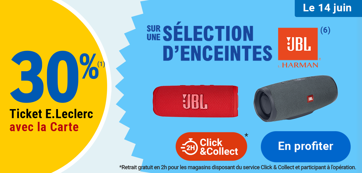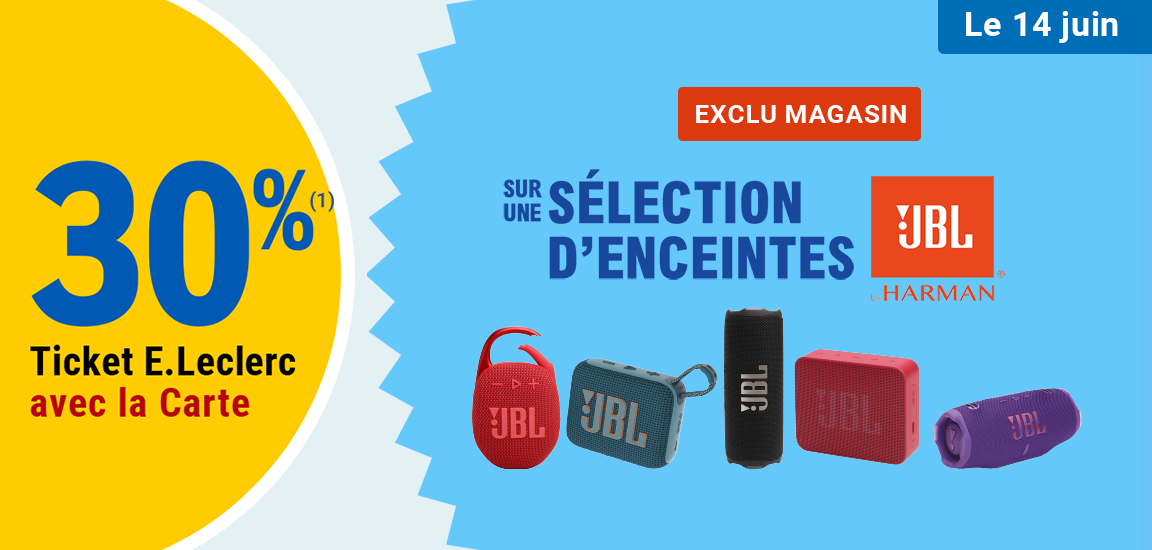 Auteur Sujet: Leclerc : 30% en tickets leclerc sur une sélection d'enceintes JBL (Le 14/06)  (Lu 422 fois)
