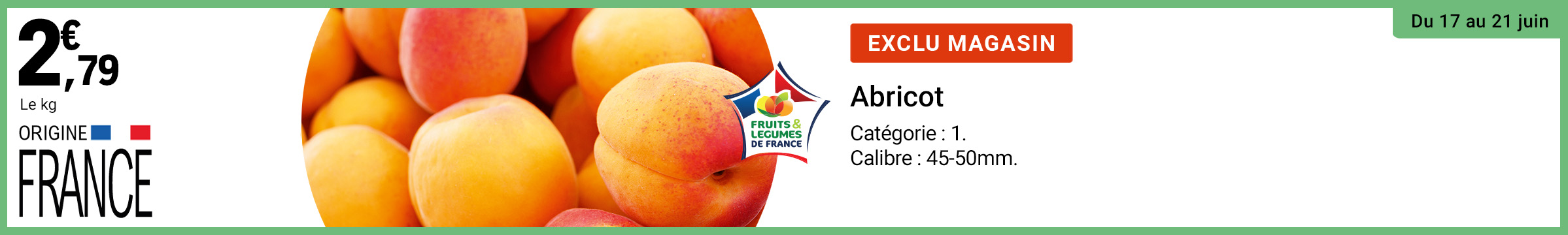 Leclerc : abricot origine France 2.79€ le kg (17/06 - 21/06)