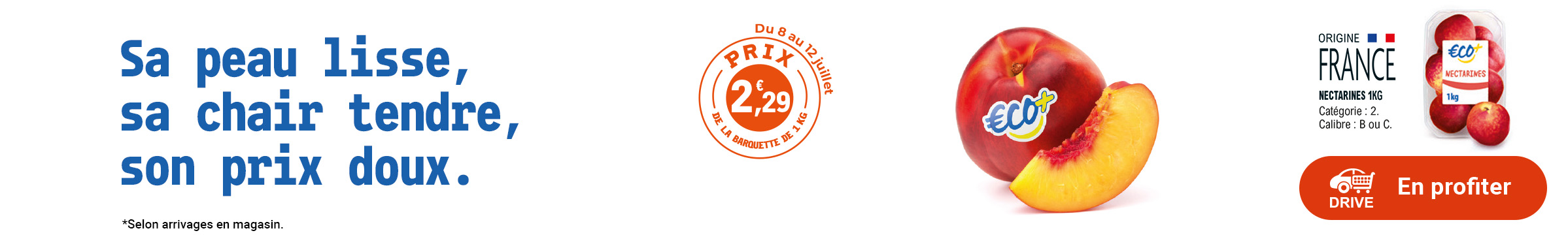 Sujet: Leclerc : nectarines Eco + origine France 2.29€ la barquette de 1kg (8/7 - 12/7) (Lu 407 fois)
