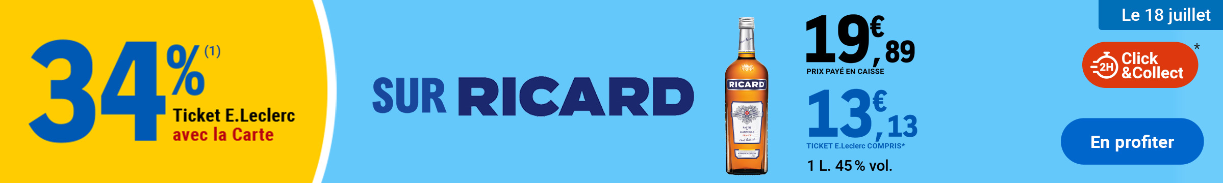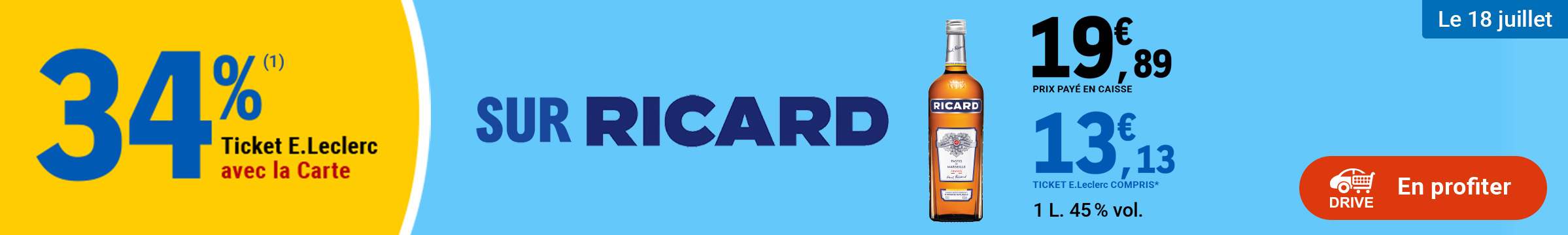 Leclerc : 34% en tickets leclerc sur Ricard (Le 18/07)