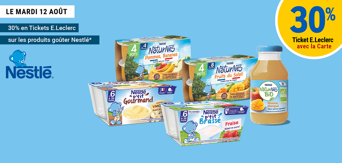 Leclerc : 30% en ticket leclerc sur les produits goûter Nestlé (Le 12/08)