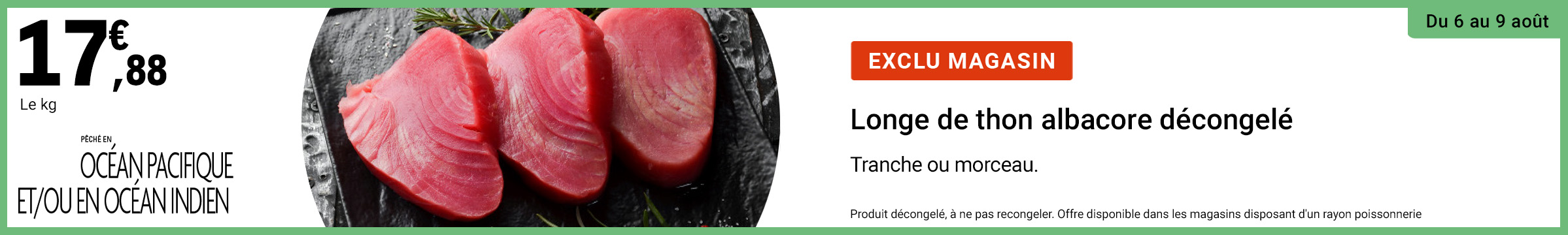 Leclerc : longe de thon albacore décongelé 17.88€ le kg (06/08 - 09/08)