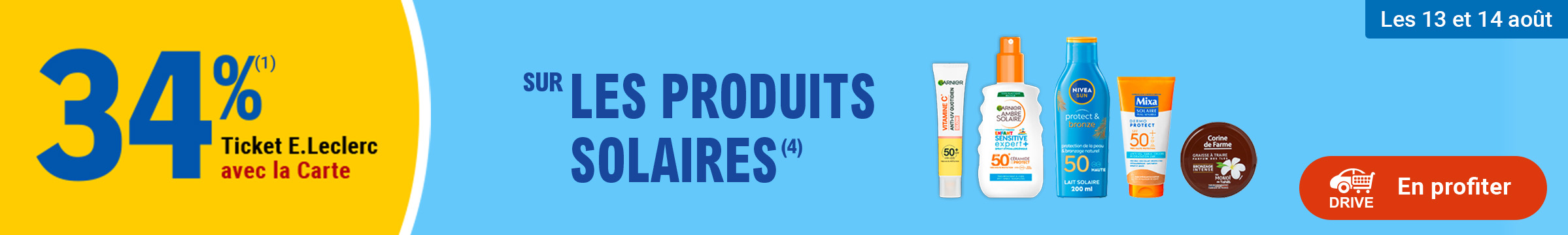 Auteur Sujet: Leclerc : 34% en ticket leclerc sur les produits solaires (13/08 - 14/08)  (Lu 675 fois)