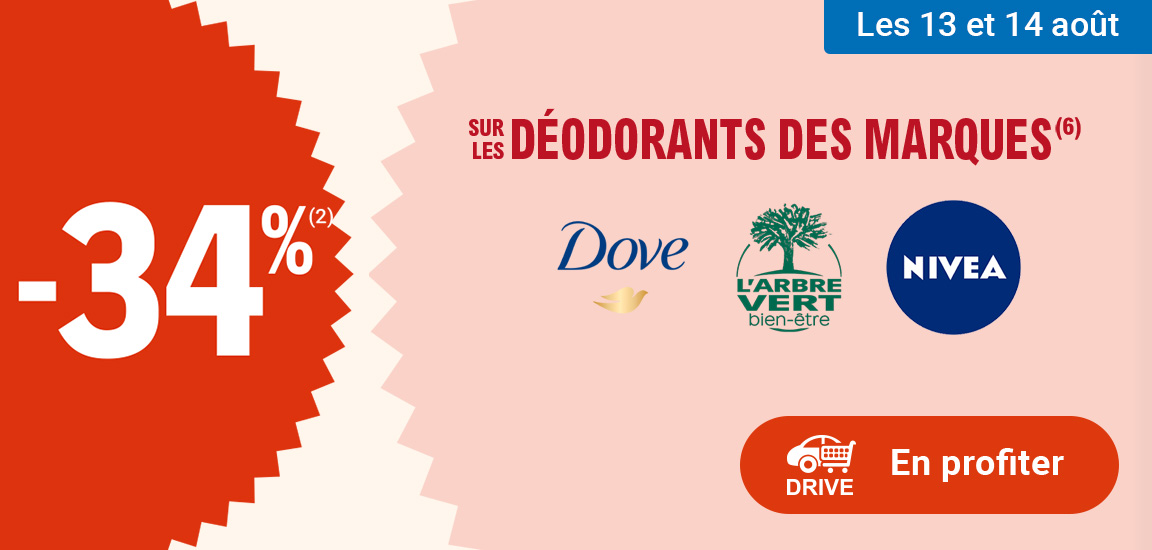 Auteur Sujet: Leclerc : 34% de RI sur une sélection de marques de déodorants (13/08 - 14/08)  (Lu 750 fois)