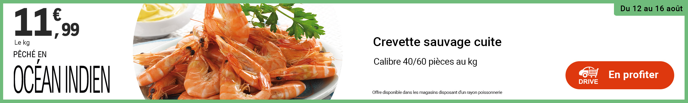 Sujet: Leclerc : crevette sauvage cuite pêchée Océan Indien 11.99€ le kg (12/8 - 16/8) (Lu 747 fois)