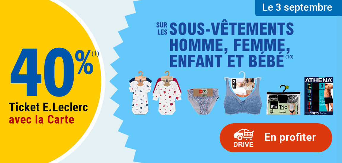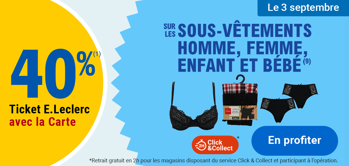 Leclerc : 40% en ticket leclerc sur sous-vêtements homme/femme...(Le 03/09)