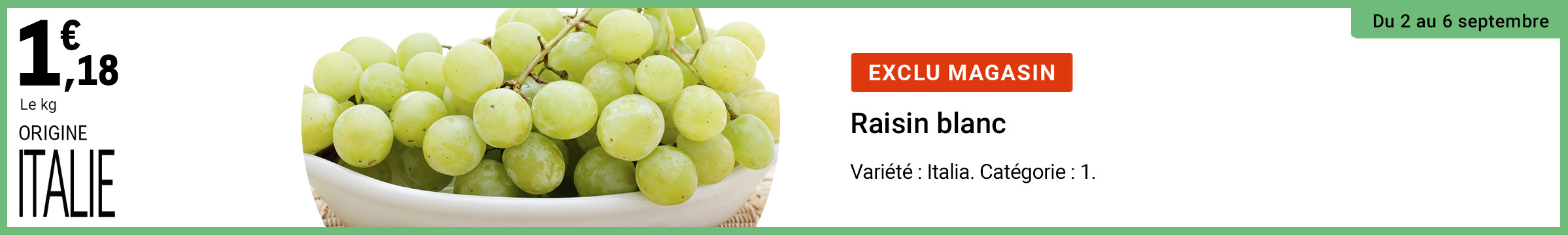 Re: Leclerc : raisin blanc origine Italie 1.18€ le kg (02/09 - 06/09)
