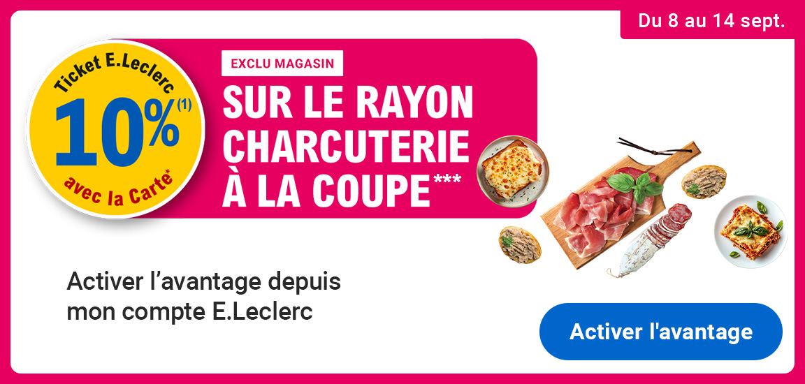 Leclerc : 10% en ticket leclerc sur rayon charcuterie à la coupe (08/09 - 14/09)