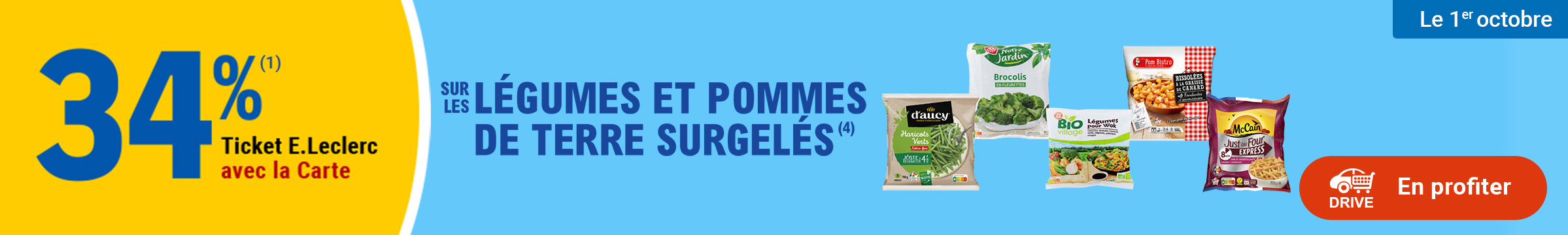 Auteur Sujet: Leclerc : 34% en ticket leclerc sur légumes/pommes de terre surgelés (Le 01/10)  (Lu 423 fois)