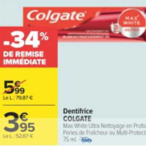 Dentifrice Max White Colgate chez Carrefour (30/09 - 13/10)
