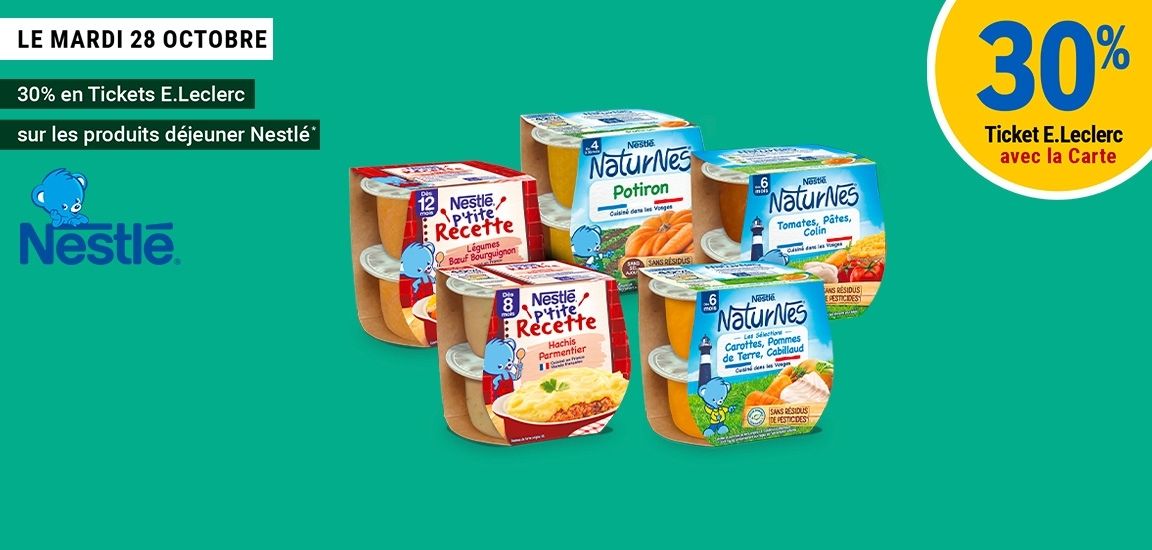 Sujet: Leclerc : 30% en ticket leclerc sur produits déjeuner Nestlé (Le 28/10) (Lu 295 fois)