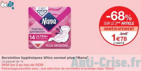 Serviettes Nana Ultra chez Monoprix (21/10 - 02/11)